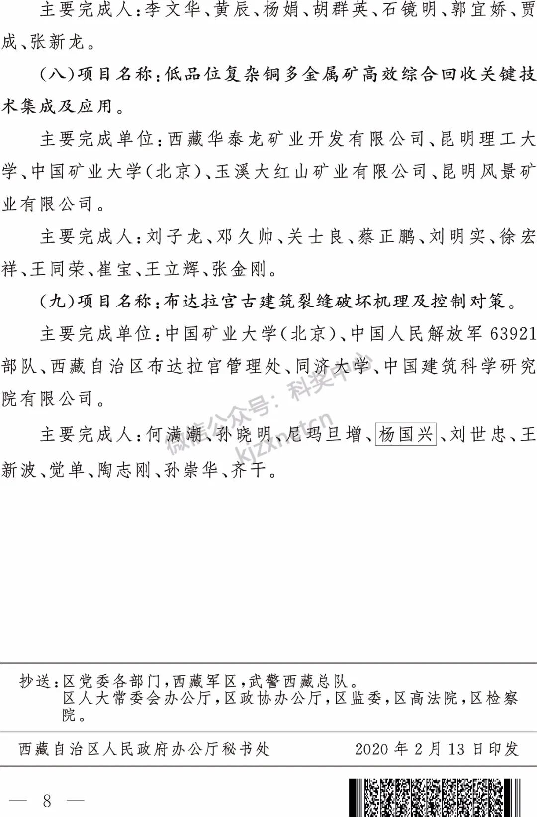 西藏自治区人民政府关于2019年度西藏自治区科学技术奖励的决定