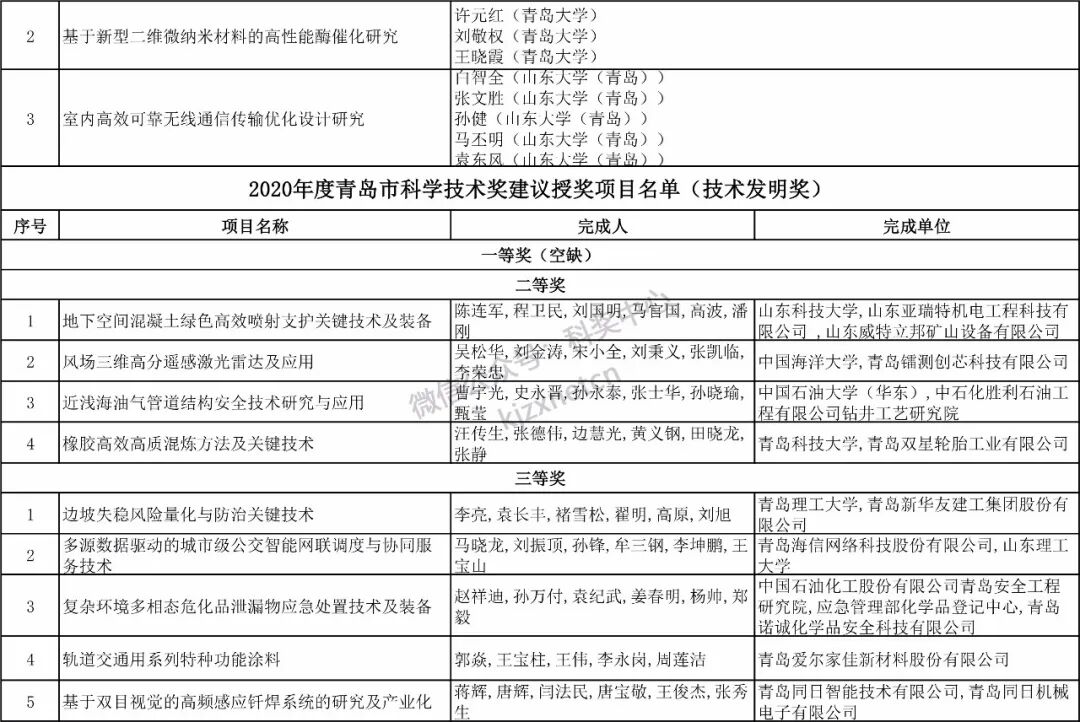 关于2020年度青岛市科学技术奖励的决定