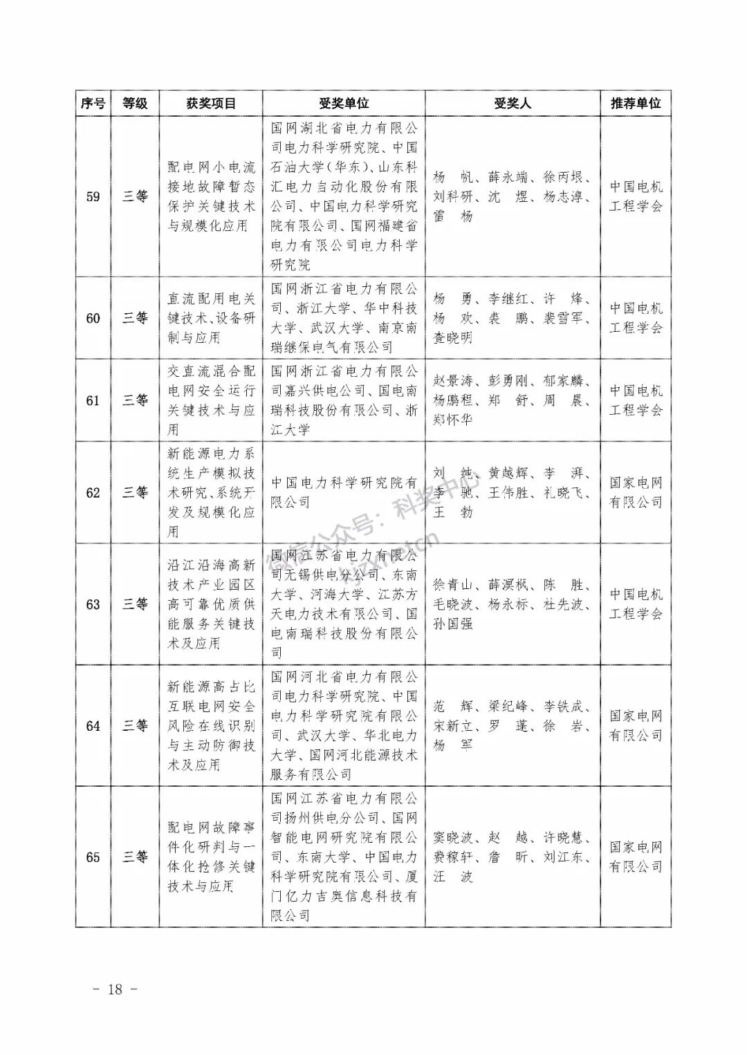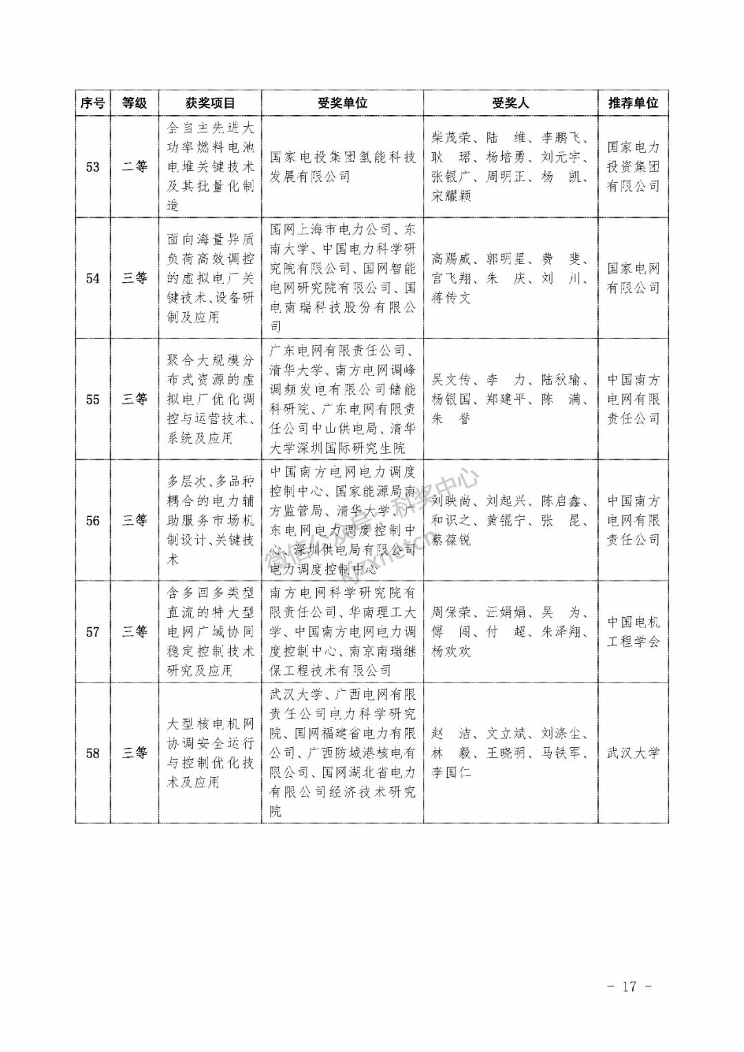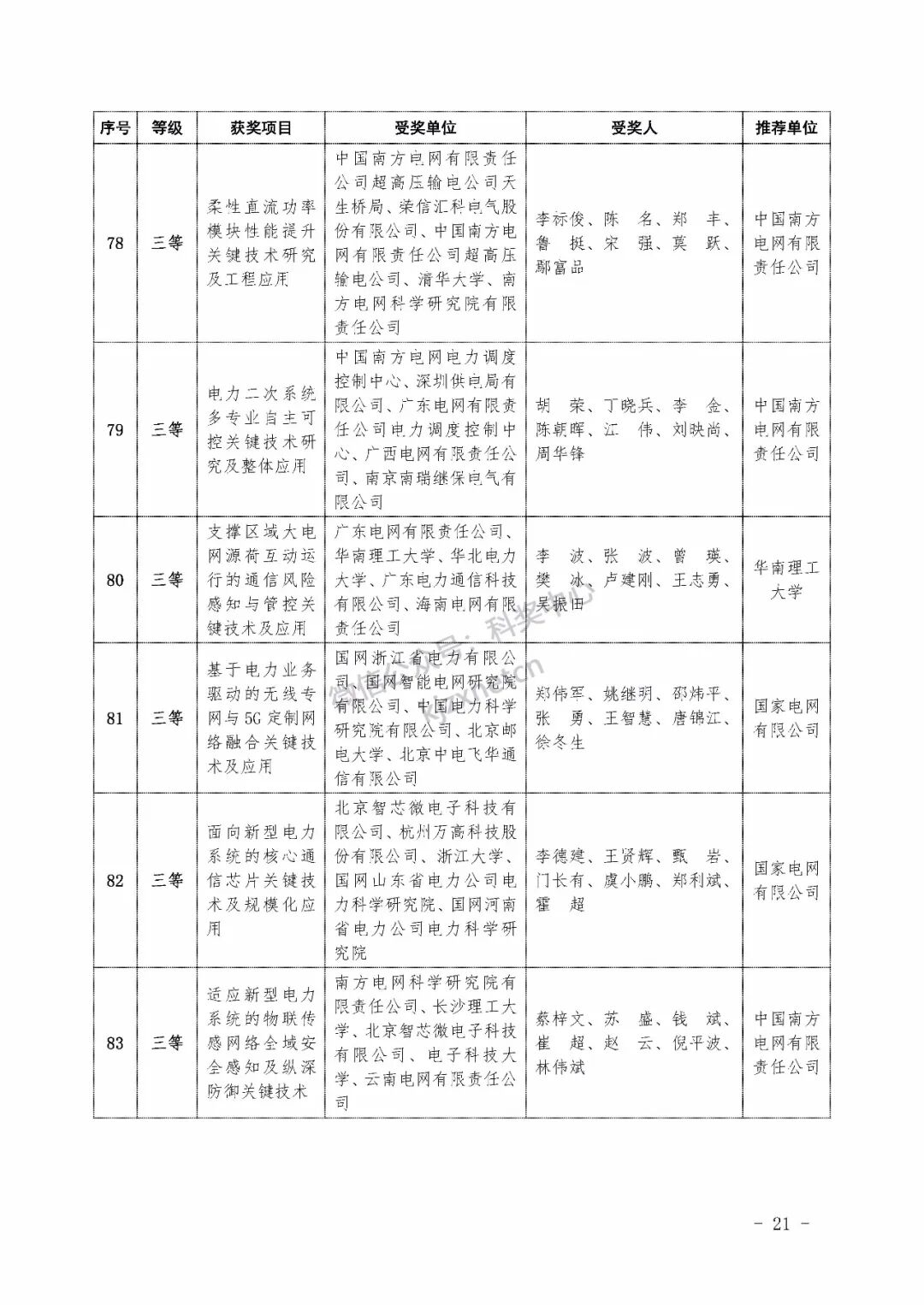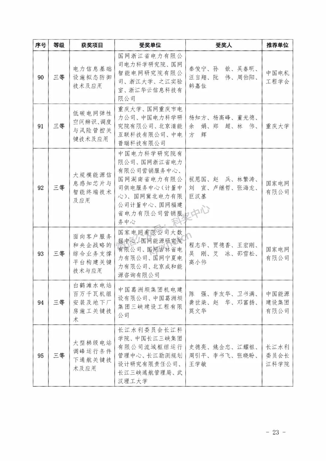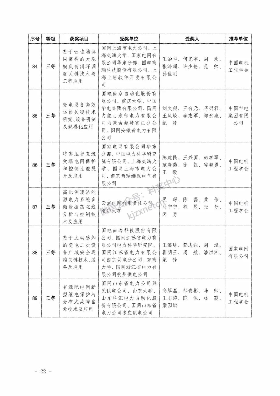 2022年度电力科学技术奖励名单