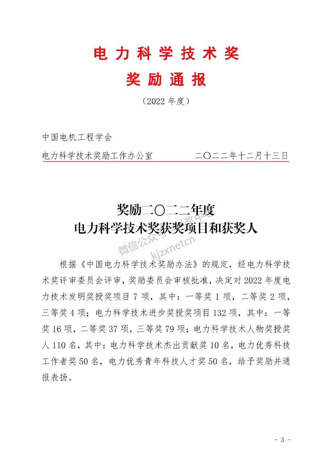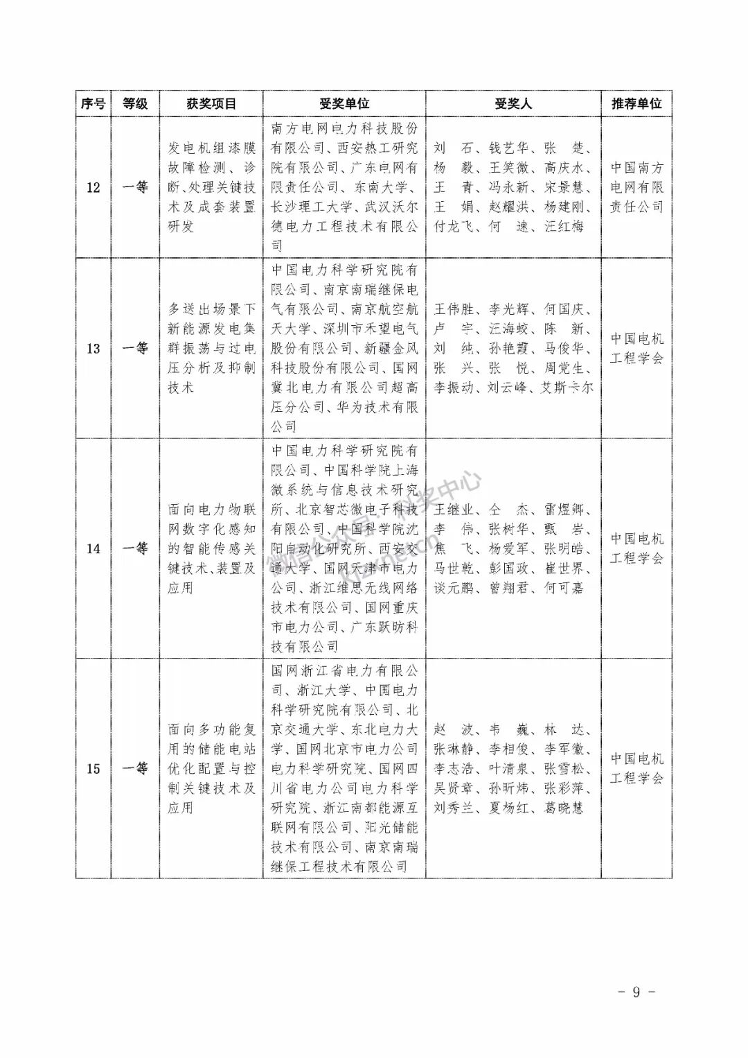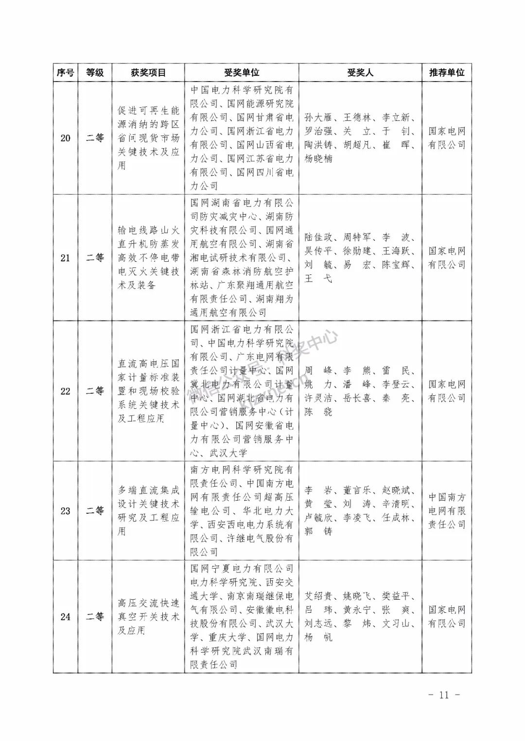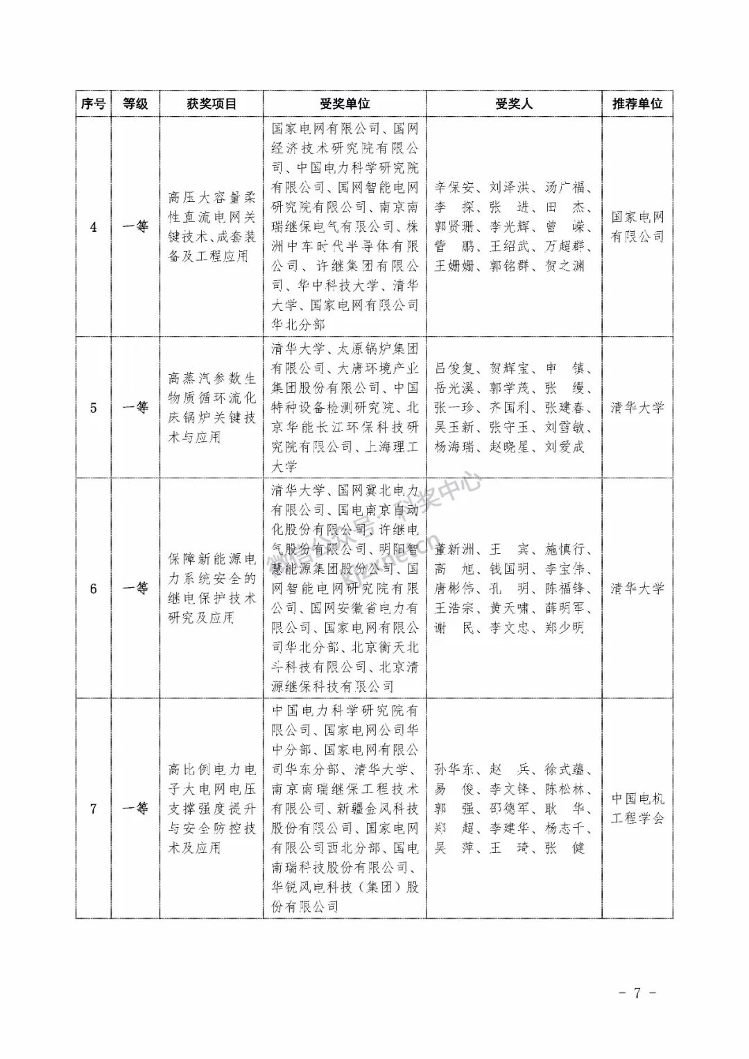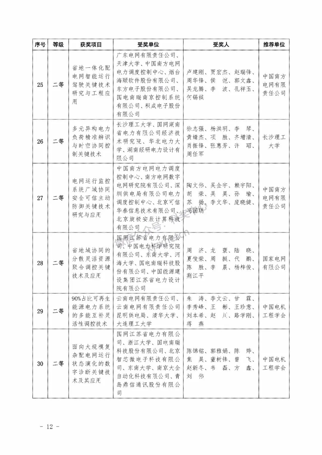 2022年度电力科学技术奖励名单