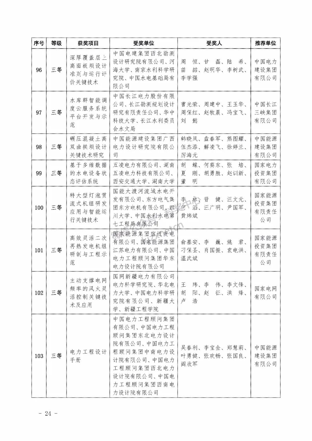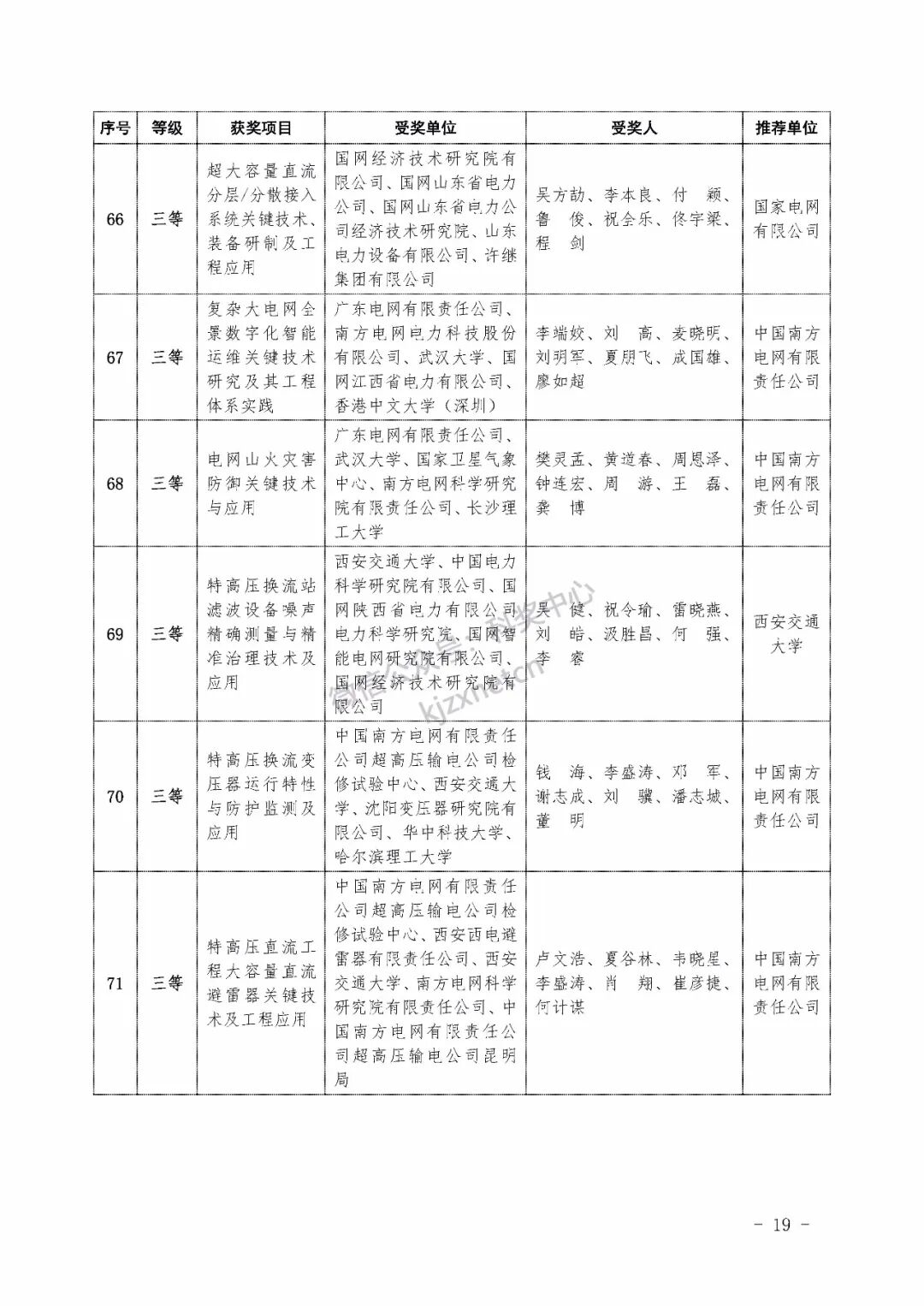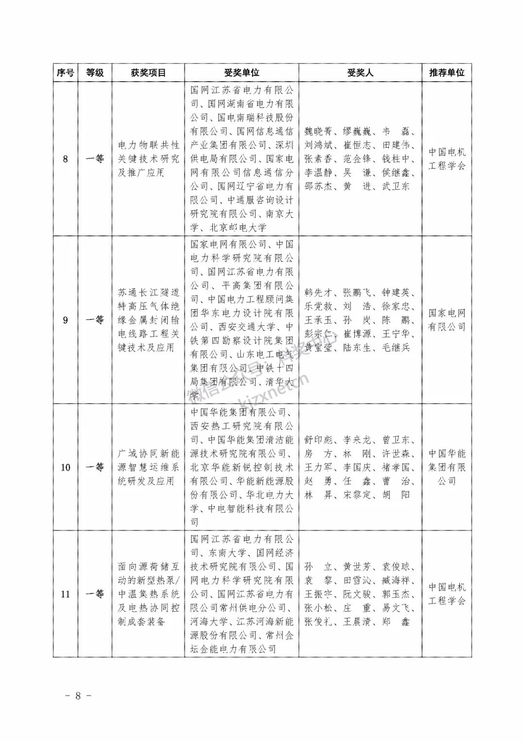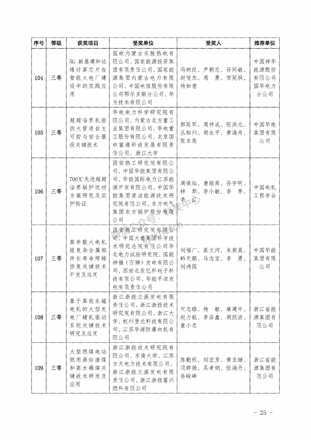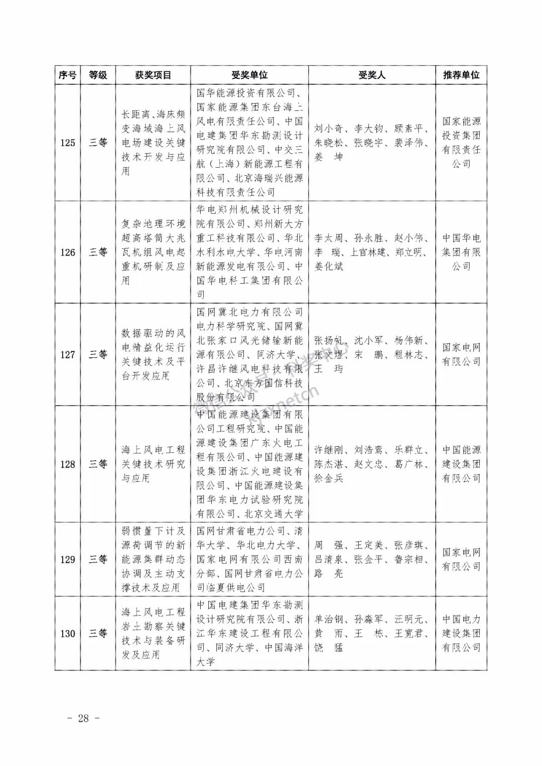 2022年度电力科学技术奖励名单
