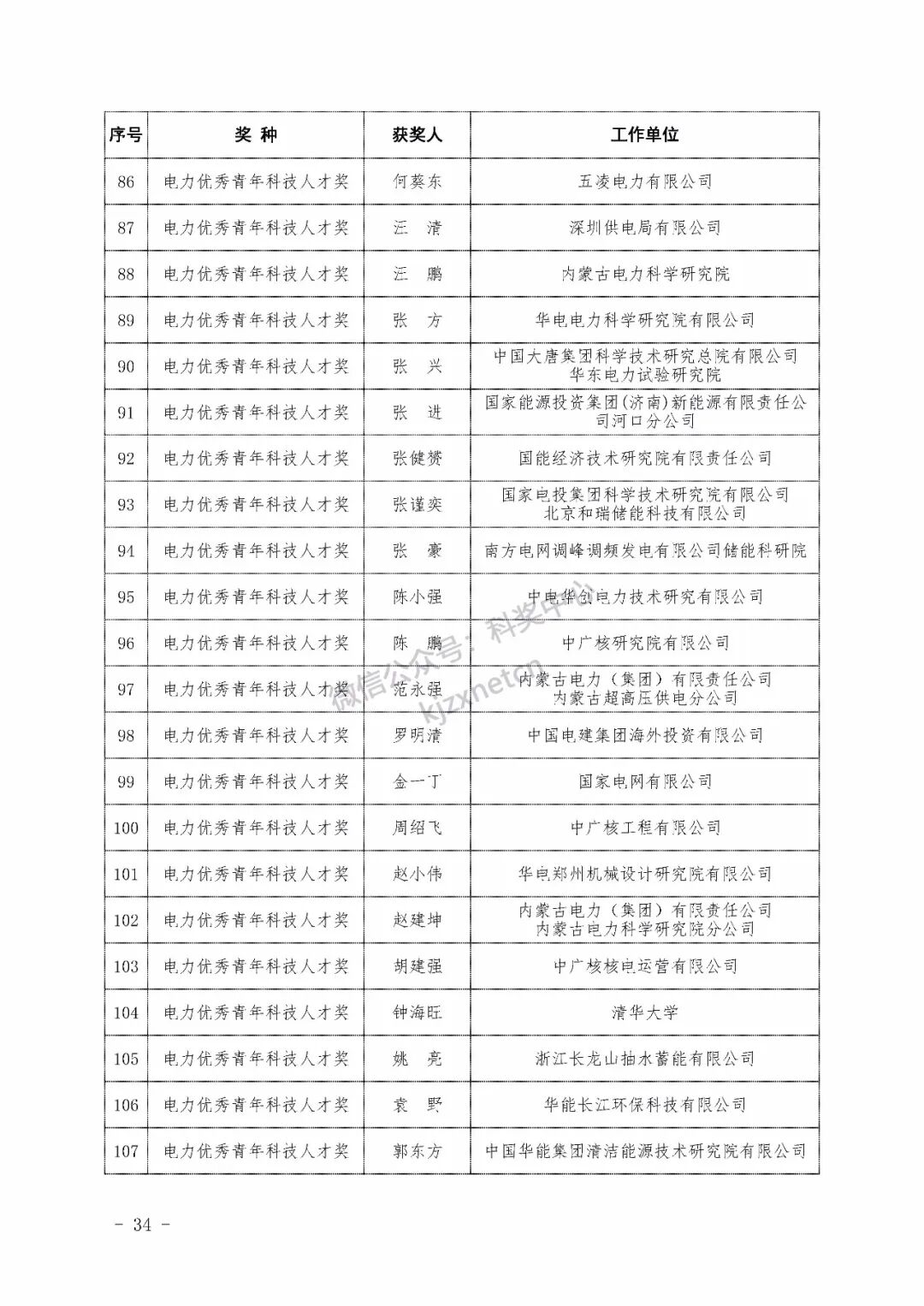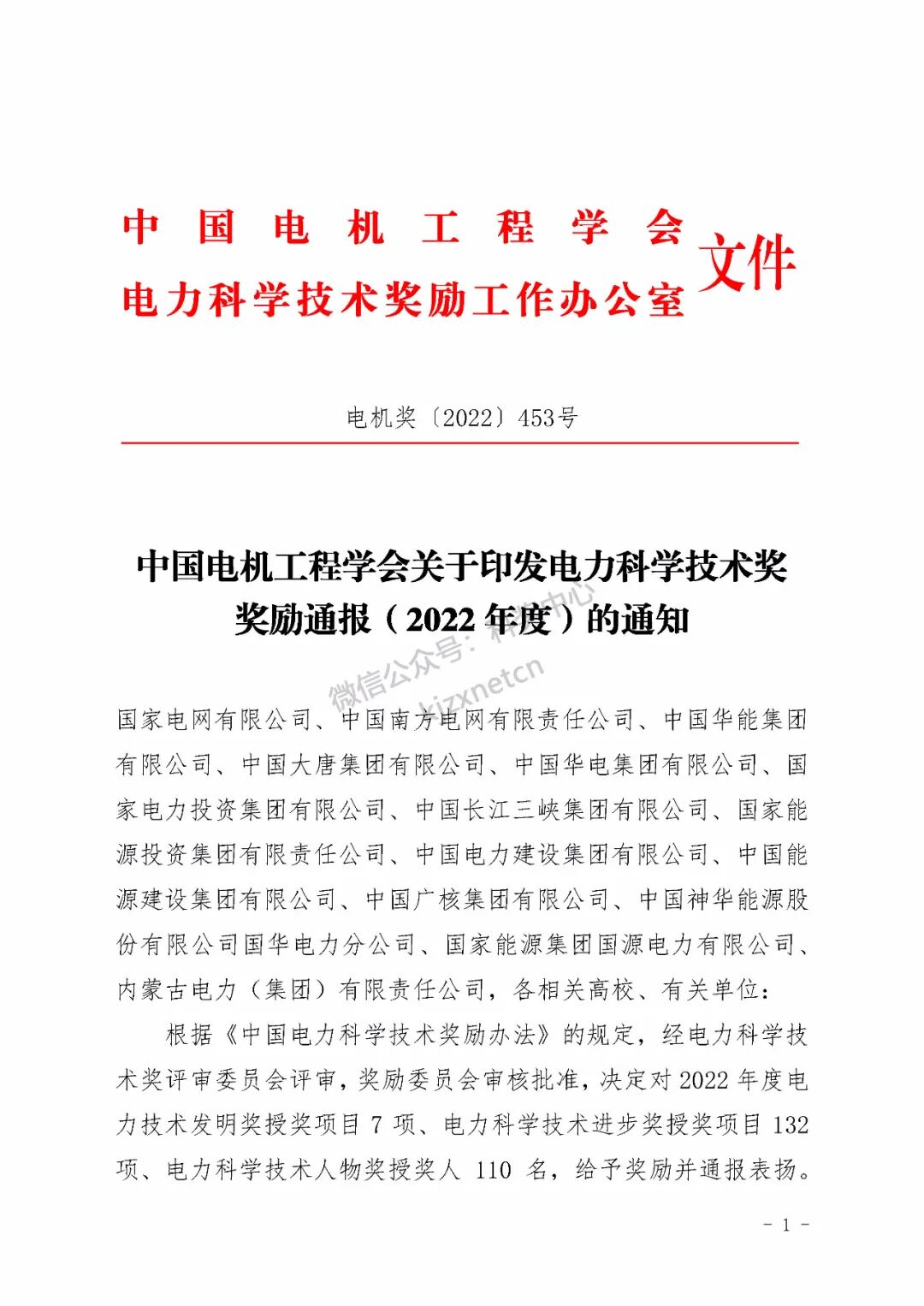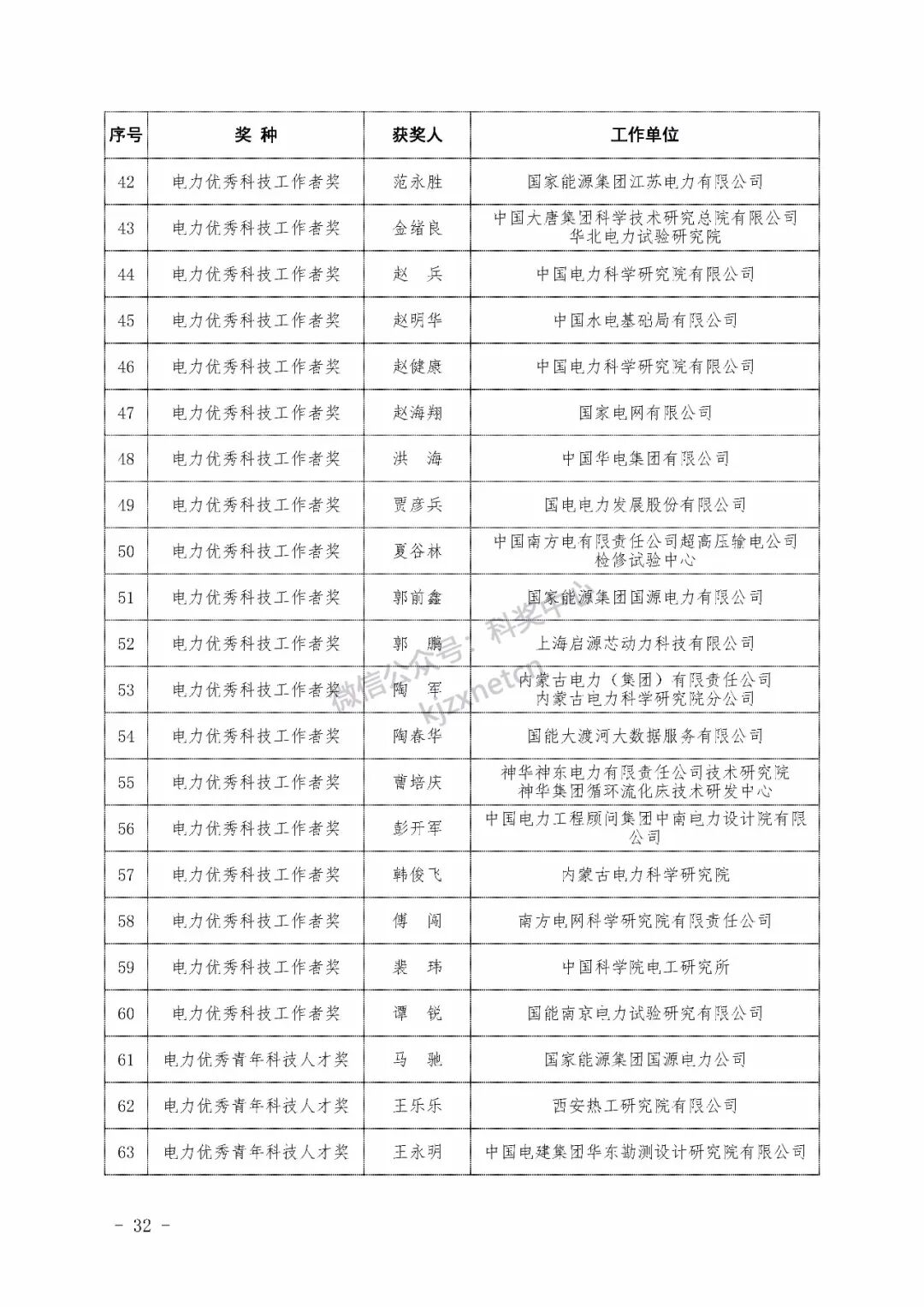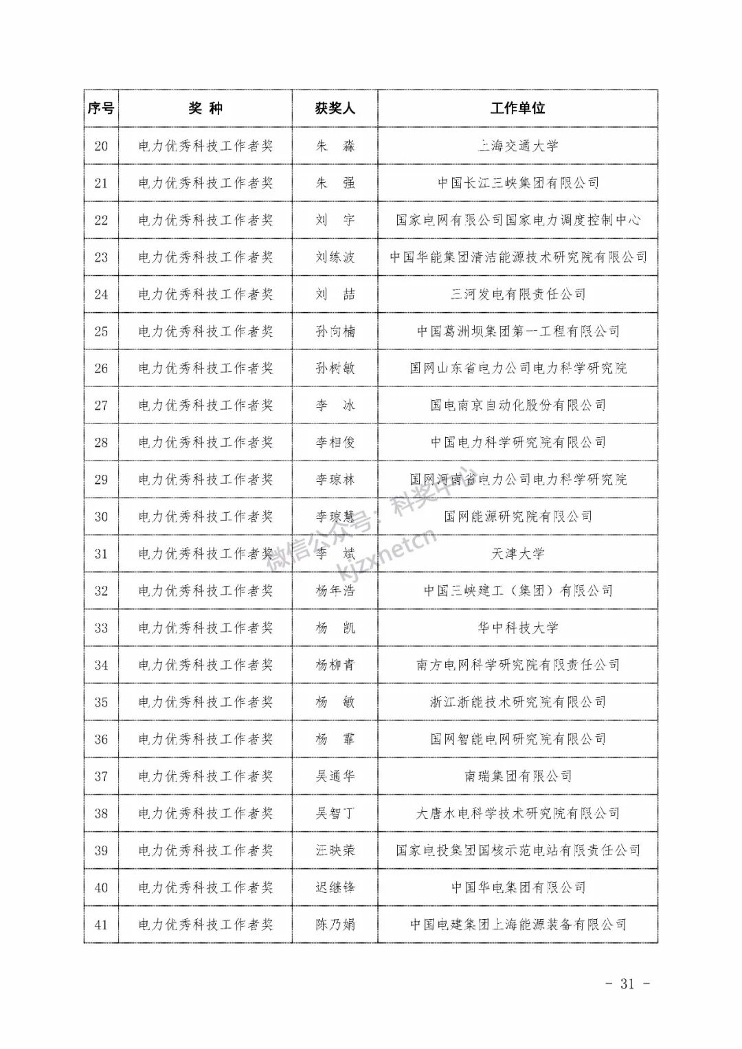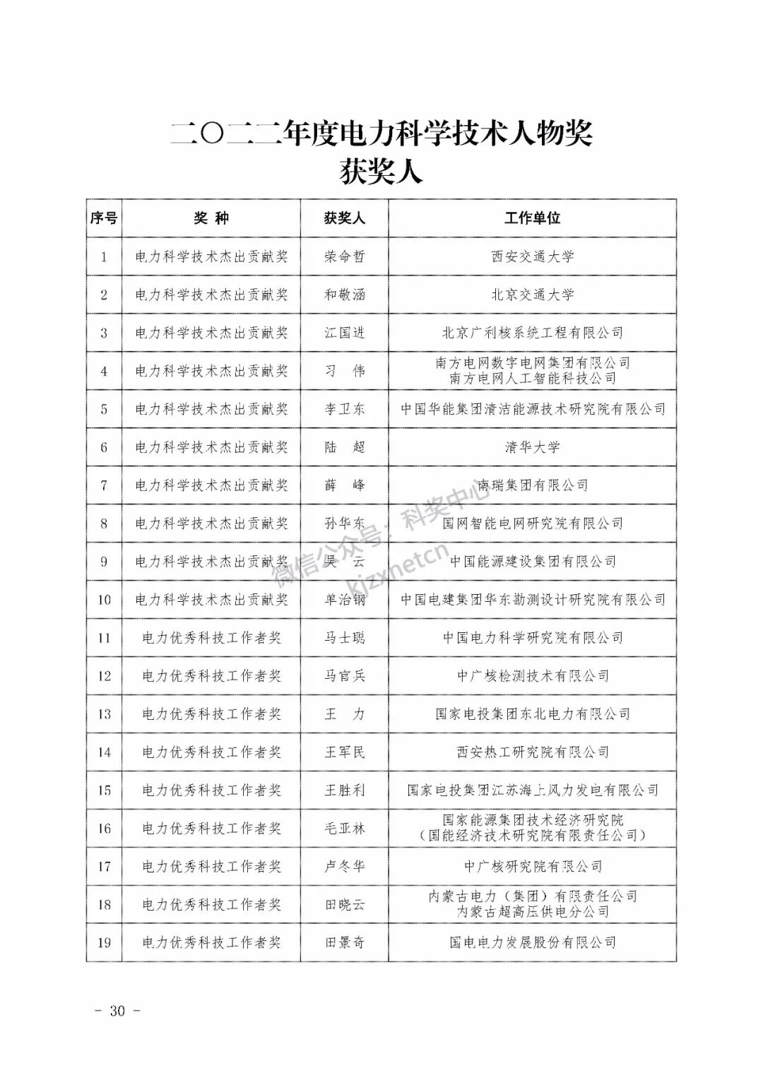 2022年度电力科学技术奖励名单