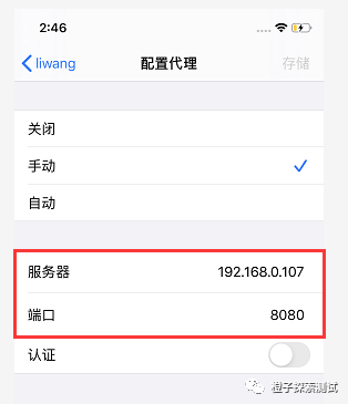2、手机与电脑处于同一网段内,设置代理ip192.1168.0.107和端口号8080(安卓和苹果一样)
