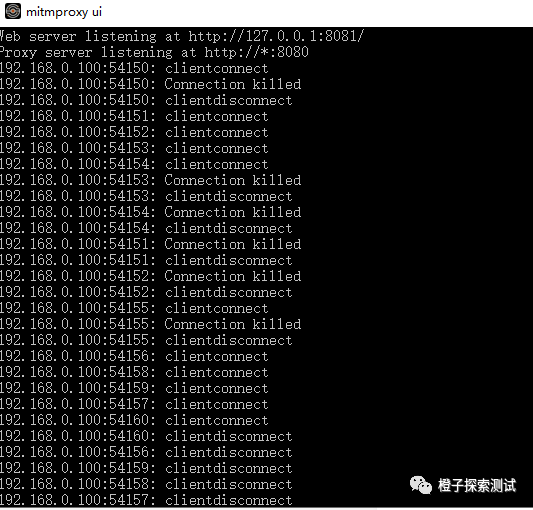2、点Finish自动启动mitmproxy服务和mitmproxy web页面,可以看到端口号是8080