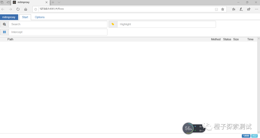 3、访问http://127.0.0.1:8081/#/flows打开抓包页面