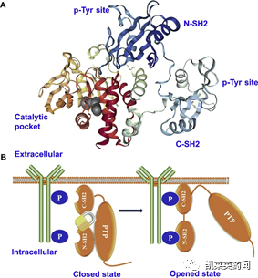 首先,SHP2是多条激活RAS信号通路的共有节点,激活RAS对癌细胞的生长和存活都非常重要,几乎所有的受体酪氨酸激酶(receptor tyrosine kinase,RTK)通过激活SHP2来启动RAS信号通路,因此一个合适的SHP2调节剂可以对不同的RTK基因突变“一网打尽”,有潜力成为广谱抗癌药物;