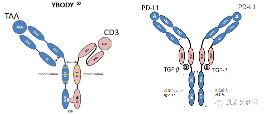 友芝友生物开发的YBODY 技术属于非对称全长双抗结构设计。采用YBODY 结构的抗体一端能够结合肿瘤细胞表面蛋白,另一端能够结合T 细胞CD3 分子,与CD3 的结合能够激活T细胞。YBODY 的Fc区采用了Knob-in-hole 和盐桥改造技术,一定程度上解决链间错配问题。CHECKBODY则是一类四价对称双特异性抗体设计,基于该平台开发的PD-L1×TGF-β双抗Y101D 在2021 年5 月获药监局批准进入临床。凭借双抗相关技术,公司与石药、科伦博泰、康哲药业达成相关合作。