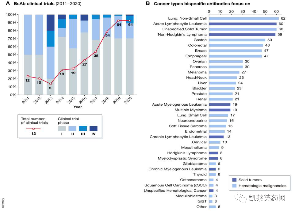桥联细胞:这类双抗一个抗原结合部位结合并激活免疫细胞,另一个的抗原结合部位识别肿瘤细胞上的特异性抗原,机制上可以招募免疫细胞(比如T 细胞和NK 细胞)至肿瘤区发挥杀伤作用。例如CD3×CD19 双抗,CD3×CD20 双抗等等。