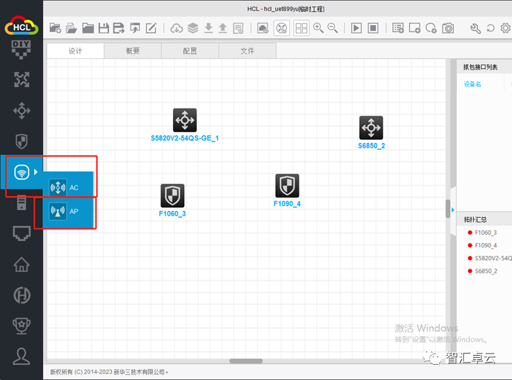 无线AP是无线网络中的接入点,它是用于提供无线信号覆盖和连接设备的设备。AP负责将有线网络连接转换为无线信号,并提供无线网络的访问服务。AC设备可以对无线设备进行身份验证、流量管理、QoS(Quality of Service)控制等操作,提供更高级别的安全和管理能力。HCL中提供的一对AC,AP均是WX55000H系列,具有高可用行,高可靠性,高转发性等特点![]()