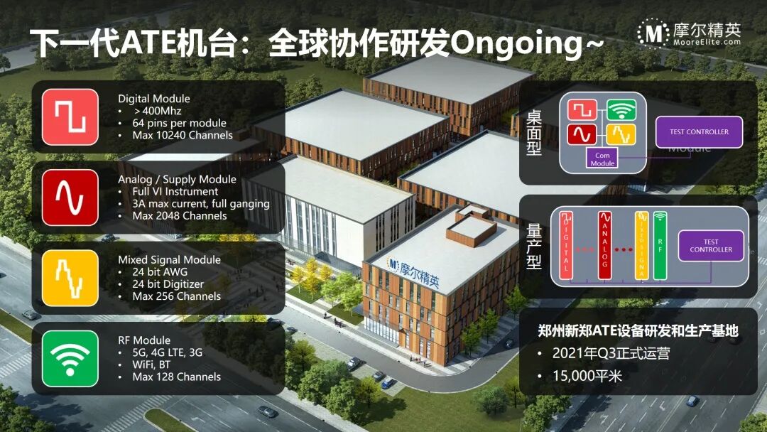 摩尔精英将在郑州新郑建设ATE设备研发和生产基地,预期2021年Q3正式运营,总规划15,000平方米。为下一代ATE测试设备研发提供保障同时,为测试服务提供完整的生产配套。