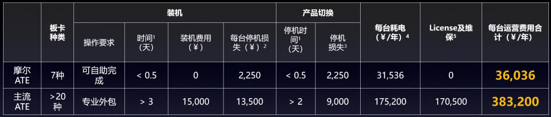 摩尔ATE的运营管理费用约为主流ATE的十分之一;