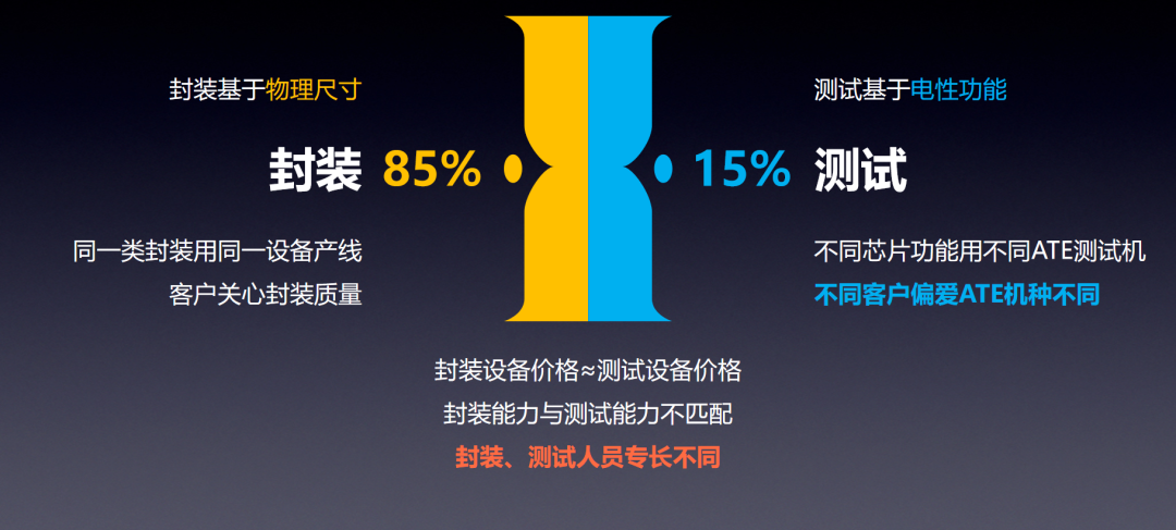 封装与测试是完全不同的业务形态:系统应用决定封装形式,封装形式决定封装设备产线,封装形式与功能无关,客户关心封装质量;