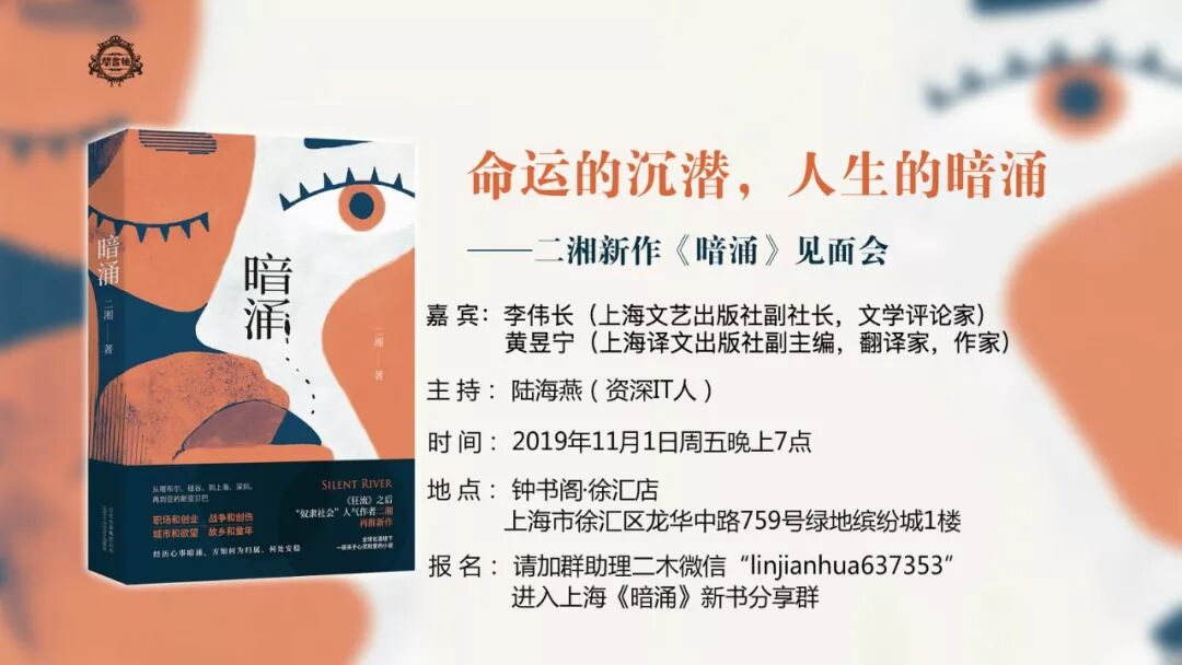 11月1日周五晚上7点在上海钟书阁绿地缤纷店,11月10日周日下午2点半在北京中关村言几又书店各有一场《暗涌》新书分享会,希望能够和你一起聊聊人生旅途上的困顿和爱。上海活动报名请加群助理二木的微信“linjianhua637353”进入上海《暗涌》新书分享群。