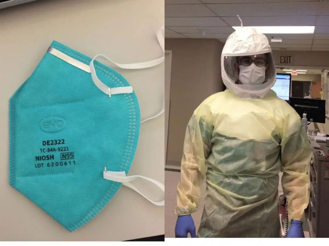 是不是又要老生常谈说PPE(个人防护品)的事儿了?加州医院N95口罩至少能管够,我和同事都喜欢用比亚迪进口的N95(图五-1), 但不要指望从头防到脚的防护服,我们有些人用自动供氧气的防护罩(图五-2)。