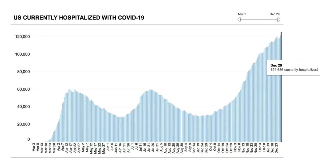 图二. 美国新冠住院患者人数的趋势图,截至12/29。