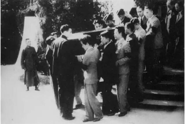 鲁迅先生出殡,据鲁迅学生萧军在《逝世消息摘要》和《逝世经过略记》中记述,抬棺人一共有16位,分别是:鹿地亘(日本作家)、胡风(作家)、巴金(作家)、黄源(鲁迅学生)、黎烈文(翻译家)、孟十还(翻译家)、靳以(文学青年)、张天翼(作家)、吴朗西(出版家)、陈白尘(剧作家)、萧乾(记者)、聂绀弩(作家)、欧阳山(作家)、周文(鲁迅学生、文学青年)、曹白(鲁迅学生、木刻家)、田军(即萧军,鲁迅学生、青年作家)。 二十五年前在上海迁葬先生的时候,我做过一个秋夜的梦,梦景至今十分鲜明。我看见先生的燃烧的心,我听见火热的语言:为了真理,敢爱,敢恨,敢说,敢做,敢追求。……但是当先生的言论被利用、形象被歪曲、纪念被垄断的时候,我有没有站出来讲过一句话?当姚文元挥舞棍子的时候,我给关在“牛棚”里除了唯唯诺诺之外,敢于做过什么事情?十年浩劫中我给“造反派”当成“牛”,自己也以“牛”自居。在“牛棚”里写“检查”、写“交代”混日子已经成为习惯,心安理得。只有近两年来咬紧牙关解剖自己的时候,我才想起先生也曾将自己比做“牛”。但先生“吃的是草,挤出来的是奶和血”。这是多么优美的心灵,多么广大的胸怀!我呢,十年中间我不过是一条含着眼泪等人宰割的“牛”。但即使是任人宰割的牛吧,只要能挣断绳索,它也会突然跑起来的。“忘记我!”经过四十五年的风风雨雨,我又回到了万国殡仪馆的灵堂。虽然胶州路上殡仪馆已经不存在,但玻璃棺盖下面慈祥的面颜还很鲜明地现在我的眼前,印在我的心上。正因为我又记起先生,我才有勇气活下去。正因为我过去忘记了先生,我才遭遇了那些年的种种的不幸。我会牢牢记住这个教训。若干年来我听见人们在议论:假如鲁迅先生还活着……当然我们都希望先生活起来。每个人都希望先生成为他心目中的那样。但是先生始终是先生。如果先生活着,他决不会放下他的“金不换”。他是一位作家,一位人民所爱戴的伟大的作家。