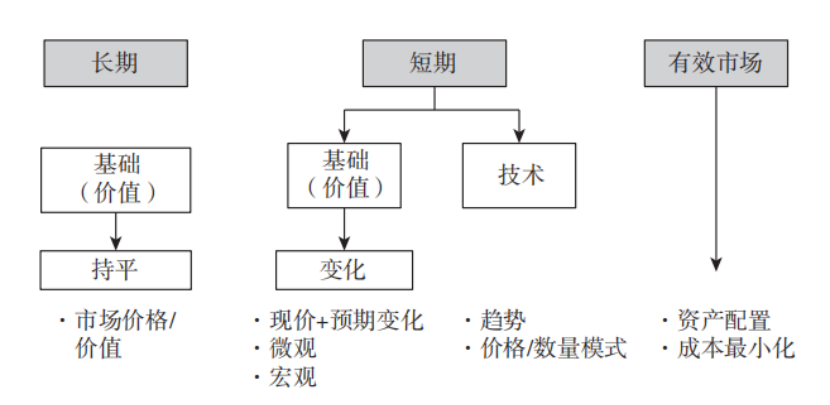 有效市场很简单,基本上就是人们会用一种指数化投资,这个时候我们考虑得最简单,就是成本和资产配置。价值投资是长期的分析方法,中间也有很多短期的分析方法,都是基于市场无效的假设,相信无效的价格最终会和价值趋同。