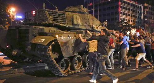 之后,埃尔多安终于得以将精力投向凯末尔所建立的扭曲体制,开始推行政治改革。他政治改革的主线就是弱化议会制,强化总统普选制,从而能够直接利用自己在民意上的多数优势。这自然引起凯末尔世俗政策的保险阀——军方——的不满。军事政变,这一熟悉的配方,再次成为军方的杀手锏。然而,大人时代变了。当军方按照习惯迅速控制国内公私媒体的时候,埃尔多安却在厕所通过社交软件直接与土耳其民众联系在一起,号召民众上街抗议。凯末尔主义最后的杀手锏也宣告失败。