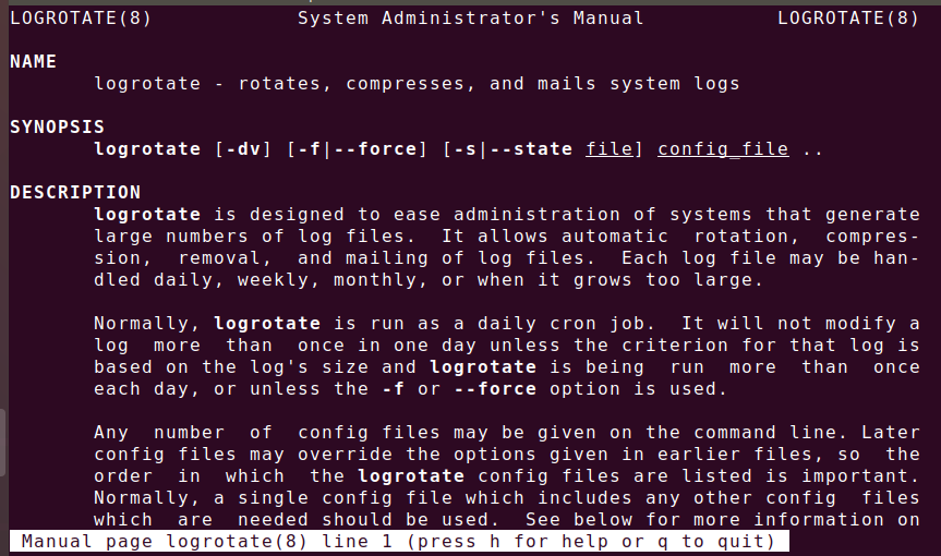 光是上面说的还不够,我们需要看一下对应的logrotate运行的格式,也就是命令怎么写
