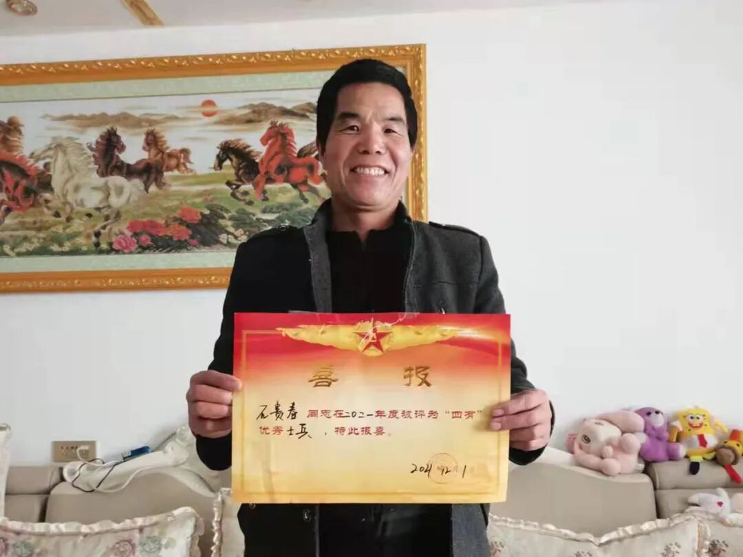 感谢党感谢部队,把君君培养成一名优秀的军人。君君,我们为你感到骄傲,你妈现在逢人就说,君君立功受奖了,村里的人纷纷给你竖起了大拇指。好小子,有出息,在部队好好干,再接再厉。