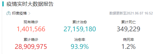 目前,印度变异毒株虎视眈眈,印度已经死亡34.9万人了,累计确诊2800万:
