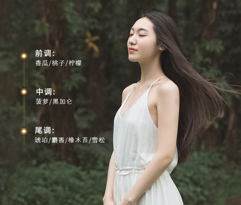 先是清新的柠檬糅合着哈密瓜的香甜,接踵而来的是甜而不腻的果香,最后是沉稳而宁静的琥珀和雪松气息,就像是做冥想一样,