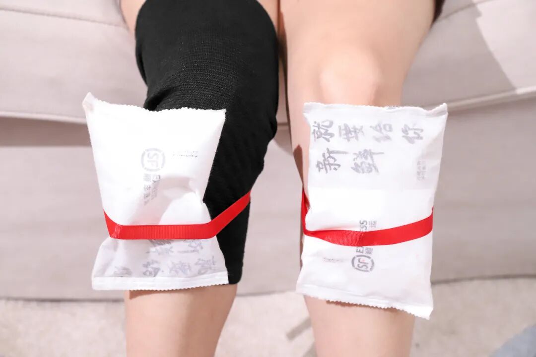 经过加热后的艾草和姜粉,能精准覆盖膝关节各个要穴,和做艾灸是一样的效果,起到祛风除湿,通络止痛的作用。