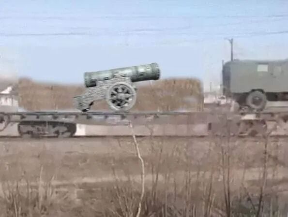 还有人拍摄到更加惊人的画面,俄军竟然把300年前的古炮运往战场: