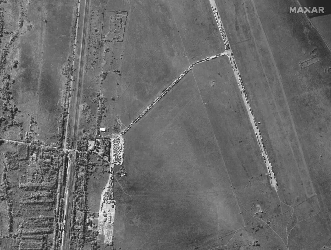 3、克里米亚大桥目前的通行能力似乎并不乐观,有人拍到了很长的等待的车队:在12日拍摄的Maxar卫星图像显示了在刻赤渡轮码头等候的货运卡车,以及停在废弃的刻赤中央机场的数百辆货运卡车,他们排队等轮渡将他们送到克里米亚,排队时间平均3-4天: