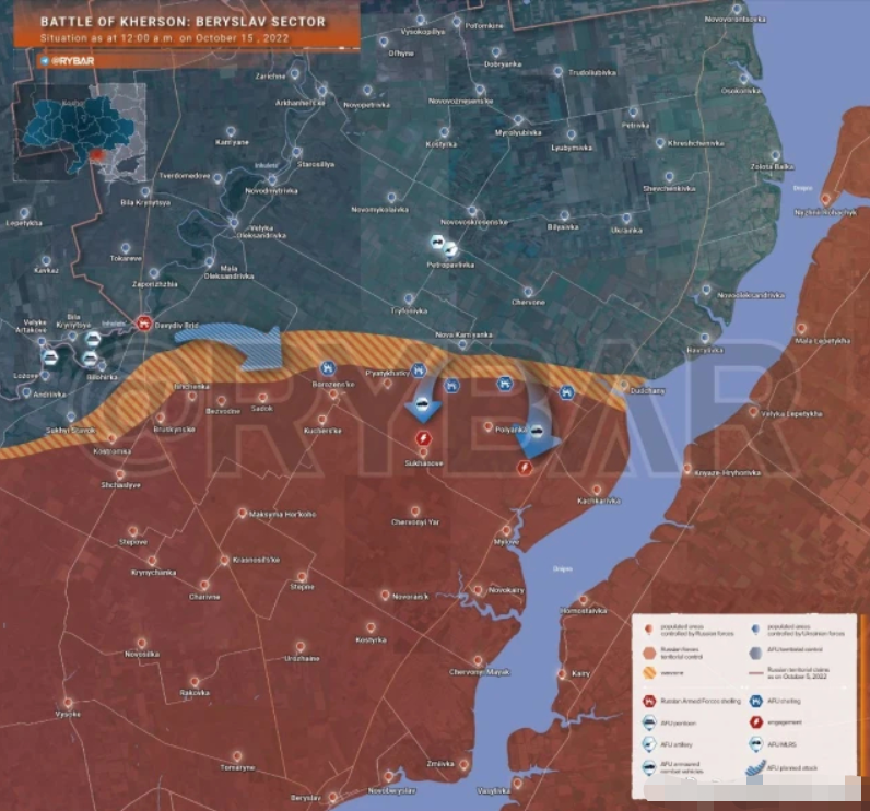 1、昨天赫尔松乌军开始从吾爱镇(MyLove)发动进攻,目标估计是与新卡霍夫卡隔第聂伯河相望的贝里斯卡夫。截至目前,乌克兰官方尚未发出任何官方消息。所以消息很少。