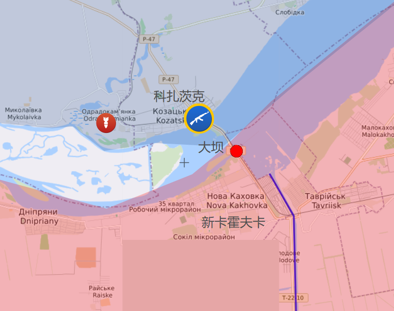 这是隔着第聂伯河与新卡霍夫卡遥相对应的地方,他们中间就是著名的新卡霍夫卡水电站。部分俄军撤离时,肯定经过这里向左岸驶去。