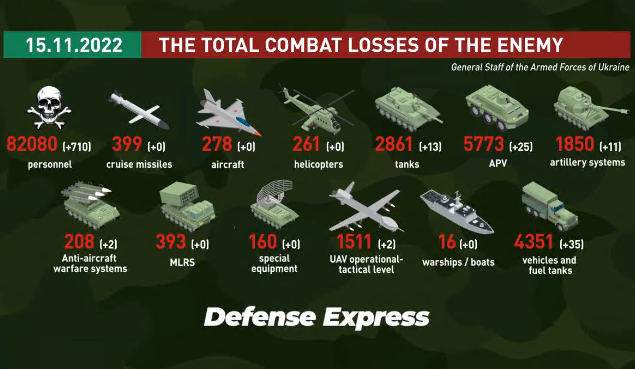 亲爱的读者朋友们,大家好,今天是11月15日,我们继续俄乌战况研判。为了让部分中间插进来的读者知晓之前的新闻,我先列出