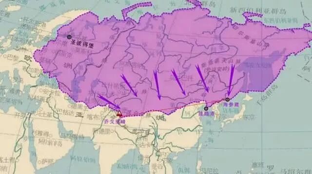 克里米亚战争失败后,东方派在失败的沙俄中开始占据上风,一个疯狂的计划逐渐形成。当时沙皇只在K2山和新疆海参崴之间划了一条直线,直线以北的土地他都要了!