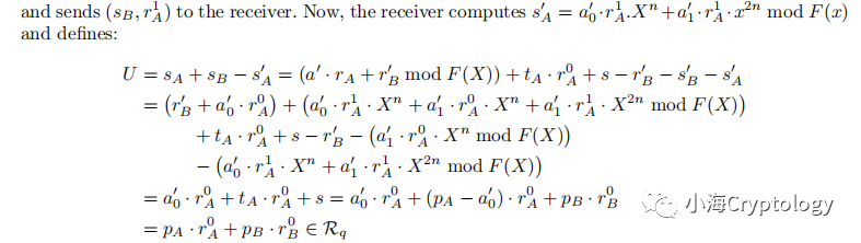 -----receiver: a single degree-n polynomial interpolation,one FFT over a polynomial ring with degree-2n polynomials, 3 multiplications of degree-n polynomials