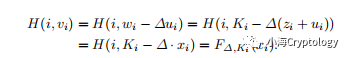 2.回到上述Bark-OPRF。对于第i个bin,在Alice放置xi和Bob放置yi的地方,Alice计算H(i,vi),Bob计算H(i,Ki)− ∆yi)=H(i,∆ · (xi)− yi)+vi)。Alice放置