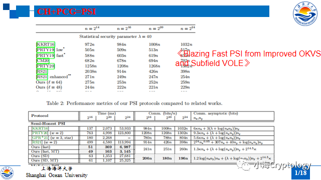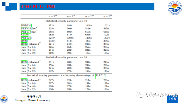 1.显然PCG+CH得到了更低的通信开销相比于OKVS+PCG.