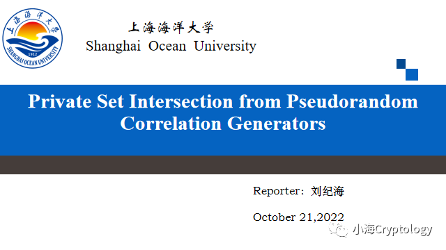 分享论文《Private Set Intersection from Pseudorandom Correlation Generators》,目前仅在Cryptology ePrint Archive上预印刷。