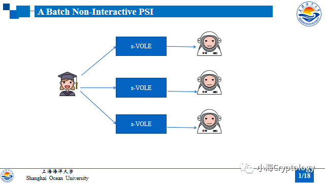 ·Batch non-interactive PSI.:具有集合X的客户端C可以广播其数据集的编码,然后接收每个服务器