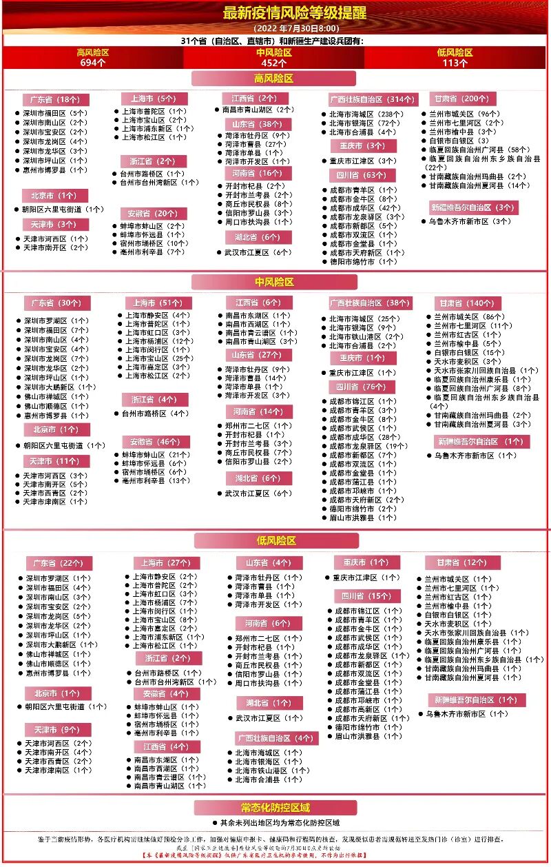 全国疫情中高风险地区所在地市
