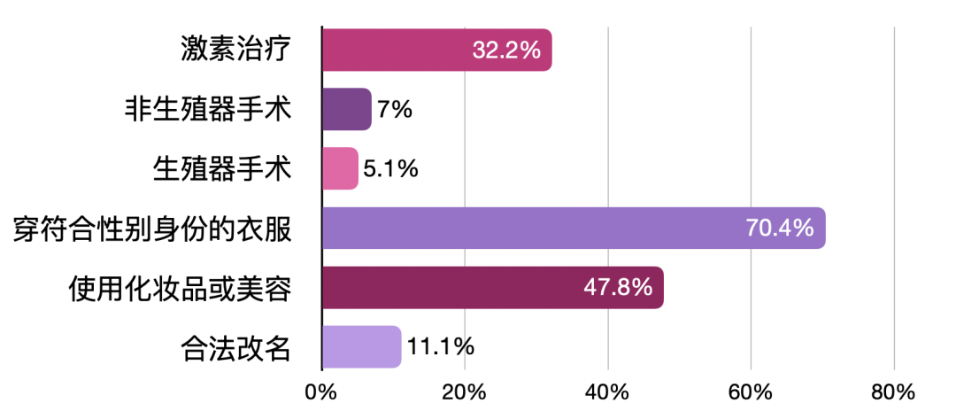 除了上述因素之外,本研究还统计了跨性别者进行过的置换步骤,作为分析的基础。