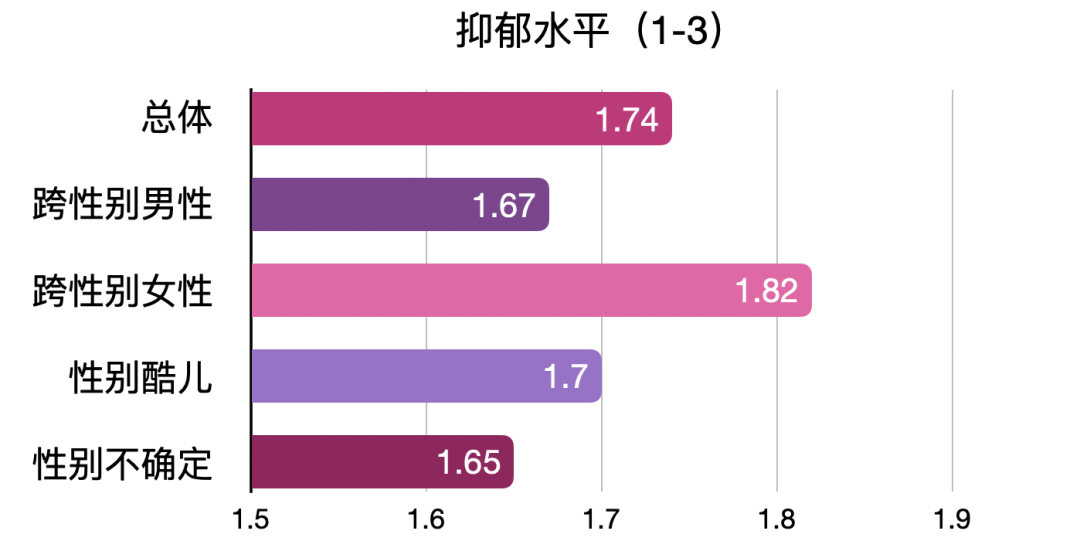 相比之下,跨性别男性具有最高的身心一致感和人生意义感,同时他们的污名意识、抑郁水平和焦虑水平,都处在相对低的水平。