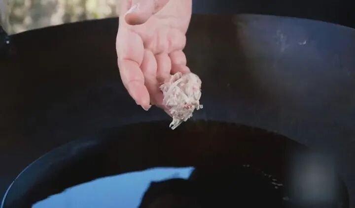 油温七成热 下入丸子