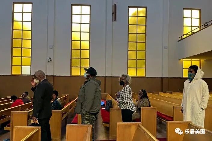 2022年4月13日,在旧金山第三浸信会的赔偿工作组会议上,人们排队发言。