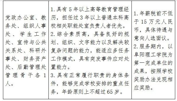 党政办公室、教务处、组织人事处、学生工作处、宣传与公共关系处、科研外事处、财务资产处、后勤管理处管理骨干各1人。