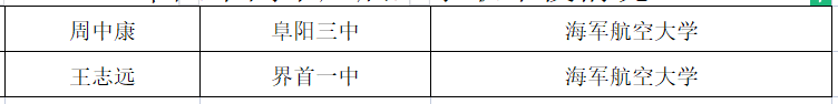 其中,考上国防科技大学15人,火箭军工程大学11人,战略支援部队信息工程大学11人,空军工程大学8人,陆军装甲兵学院7人,海军工程大学6人,陆军工程大学6人,陆军炮兵防空兵学院5人,陆军防化学院4人,武警海警学院3人,武警警官学院1人,武警特种警察学院3人,战略支援部队航天工程大学3人,空军预警学院3人,陆军特种作战学院2人,海军航空大学2人,海军军医大学1人,海军潜艇学院1人,空军航空大学1人,空军军医大学1人,陆军边海防学院1人,陆军步兵学院1人,陆军炮兵学院1人,武警工程大学1人。