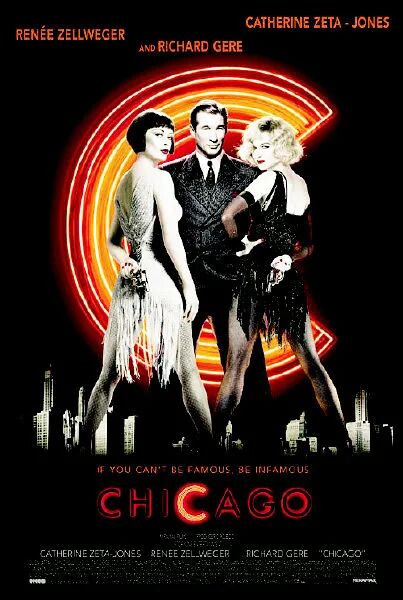《芝加哥》是由罗伯·马歇尔执导,蕾妮·齐薇格、凯瑟琳·泽塔-琼斯、理查·基尔、约翰·C·赖利等主演的犯罪类、歌舞类喜剧片。该片于2002年12月10日在美国上映。