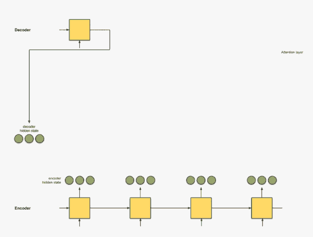 这是一个简单的seq2seq模型。我要进行的注意力层的逐步计算是一个seq2seq+attention模型。这里有一个关于这个模型的快速直觉。