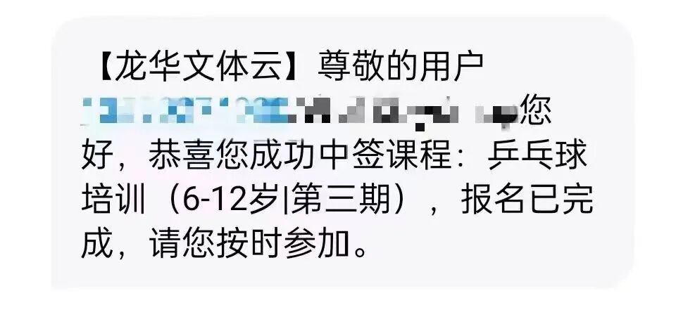 在公众号“龙华文体云”预报名成功的人员,按预报名的时间顺序在后台生成序列号,9月30日进行序列号抽选(系统随机抽取),并以短信的方式通知中奖人员获得公益培训名额。