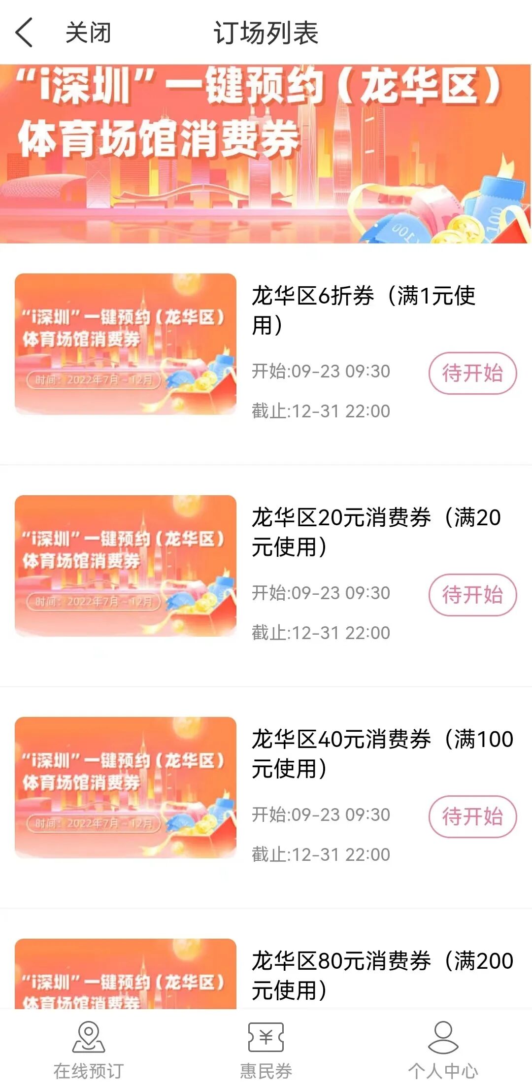 本次发放的龙华区体育场馆消费券共有4种,分别是6折消费券(满1元使用,上限1000元)、20元消费券(满20使用)、40元消费券(满100元使用)、80元消费券(满200元使用),抢完即止,请按需抢券。