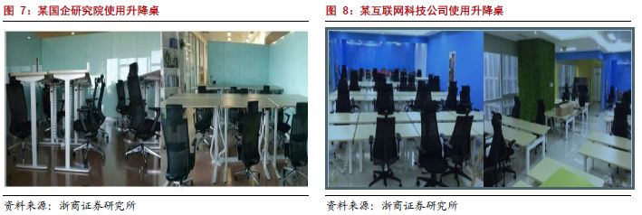 久坐危害日益明显,国内健康办公意识觉醒。2017年上海外服发布《2017上海白领健康指数白皮书》,通过对2011-2016年近50万人次上海白领健康体检数据的分析及相关问卷调研发现:上海白领体检异常率连续6年持续走高,从2011年的87.6%上升到2016年的95.68%。根据乐歌市场部负责人透露,随着办公人群对健康的重视、对久坐危害的认知越来越高,乐歌升降桌已广泛运用于国企、高校、互联网科技型公司。